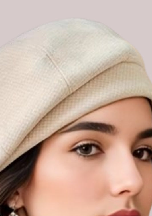 BERET FEMME CARREAUX BEIGES ET BLANCS