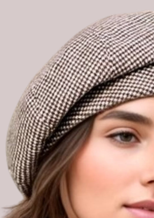 BERET FEMME CARREAUX BRUNS ET BLANCS