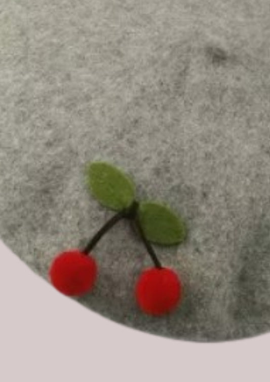 BERETS FEMME ET ENFANT GRIS AVEC CERISES