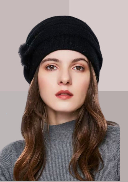 BONNET LAINE NOIR - CACHEMIRE DE LAPIN