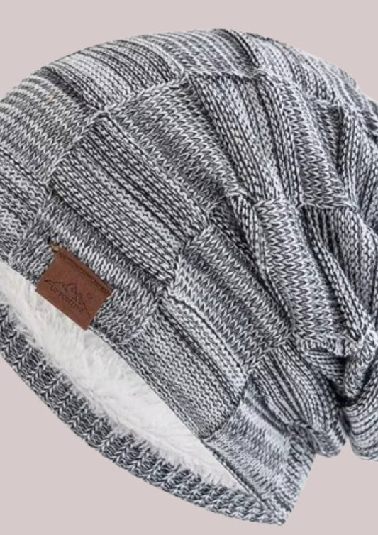 BONNET MAILLE - DOUBLE POLAIRE - GRIS