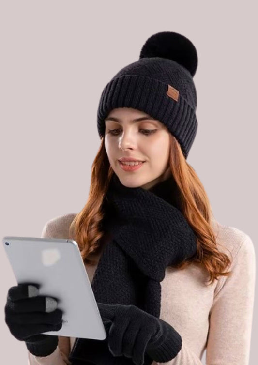 ENSEMBLE BONNET ECHARPE GANTS FEMME NOIR