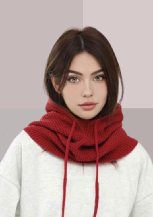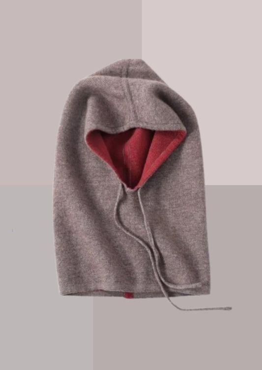 CAGOULE CAPUCHE FEMME BEIGE / ROUGE - CACHEMIRE