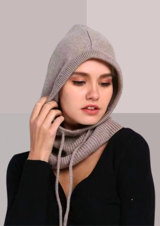 CAGOULE CAPUCHE FEMME GRIS / BEIGE - CACHEMIRE