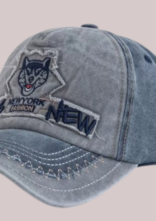 CASQUETTE BRODEE LOUP GRIS ET BLEU - THE WOLF