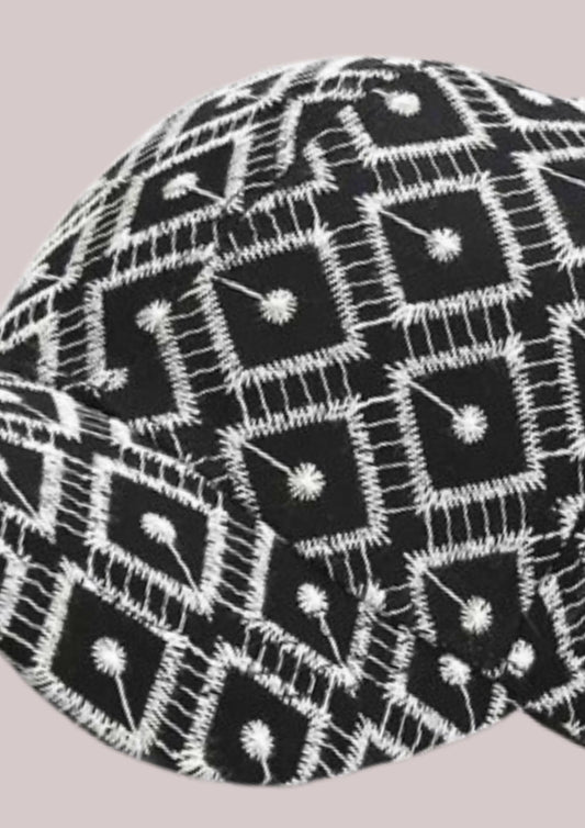CASQUETTE MOTIF GEOMETRIQUE - NOIR ET BLANC
