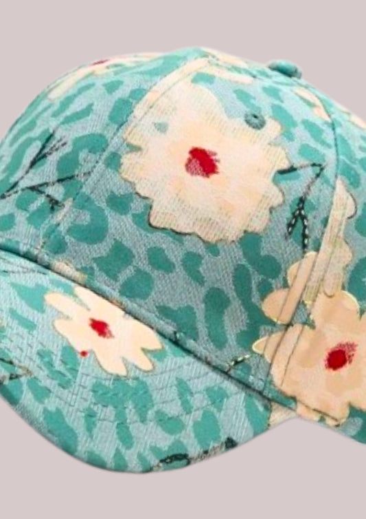 CASQUETTE FLEURIE - BLEU TURQUOISE