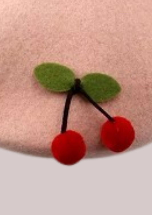 BERET FEMME ET ENFANT ROSE AVEC CERISES