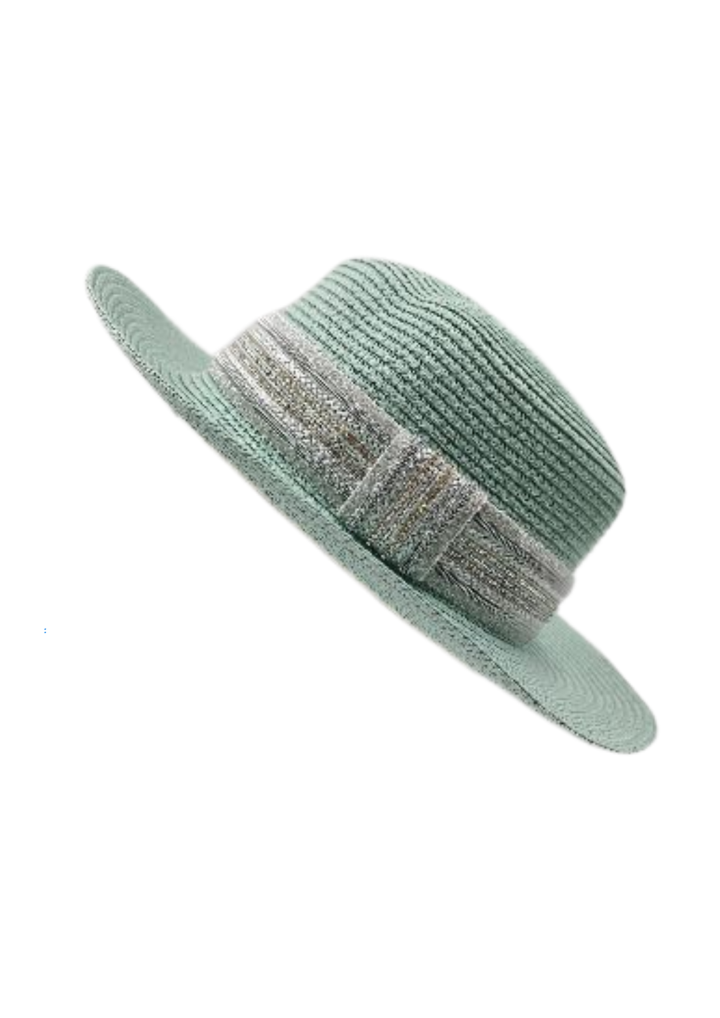 Ce couvre-chef habillé protége votre tête des rayons du soleil tout en vous permettant de rayonner avec style. Sa paille tissée et tressée offre une protection efficace contre les rayons UV, vous permettant de profiter pleinement des journées ensoleillées en toute tranquillité. Que vous vous promeniez sur la plage, que vous flâniez en ville ou que vous déjeunierzà la terasse d'un restaurant ce chapeau vert d'eau ajoutera une touche de fraîcheur et de sophistication à votre look.